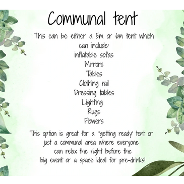 This option is great as a space for everyone to get ready together, a bridesmaids preparing area, a chill out area or pre-drinks. Again, we can work alongside you to match your requirements.