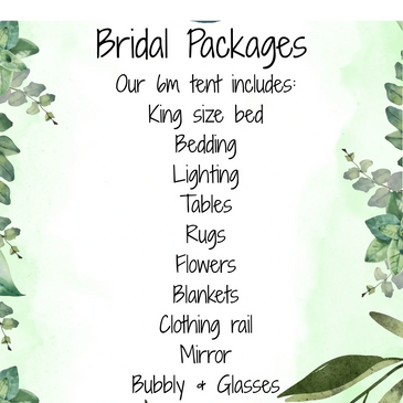 This tent is very tastefully decorated to give your first night as a married couple a more luxurious feel. It also has space for you to hang up your suits and dresses prior to the big event and after. You can also celebrate with a complimentary bottle of bubbly.